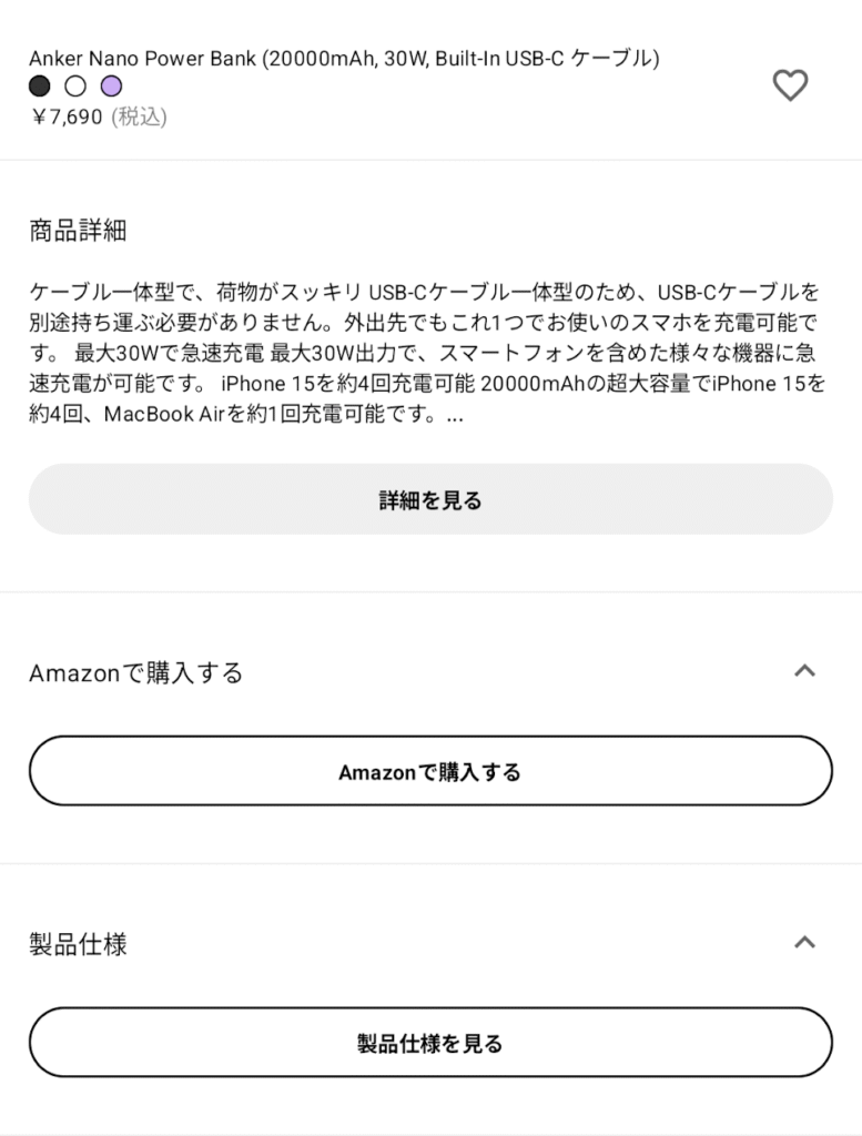 体験談な話になりますが、AmazonよりもAnkerオンラインストアのほうが、セール品の数や種類に限りがありました。そのため、Amazonサイトで「これほしい!」となっている製品をAnkerオンラインストアで調べると値段が高い経験が多かったです。